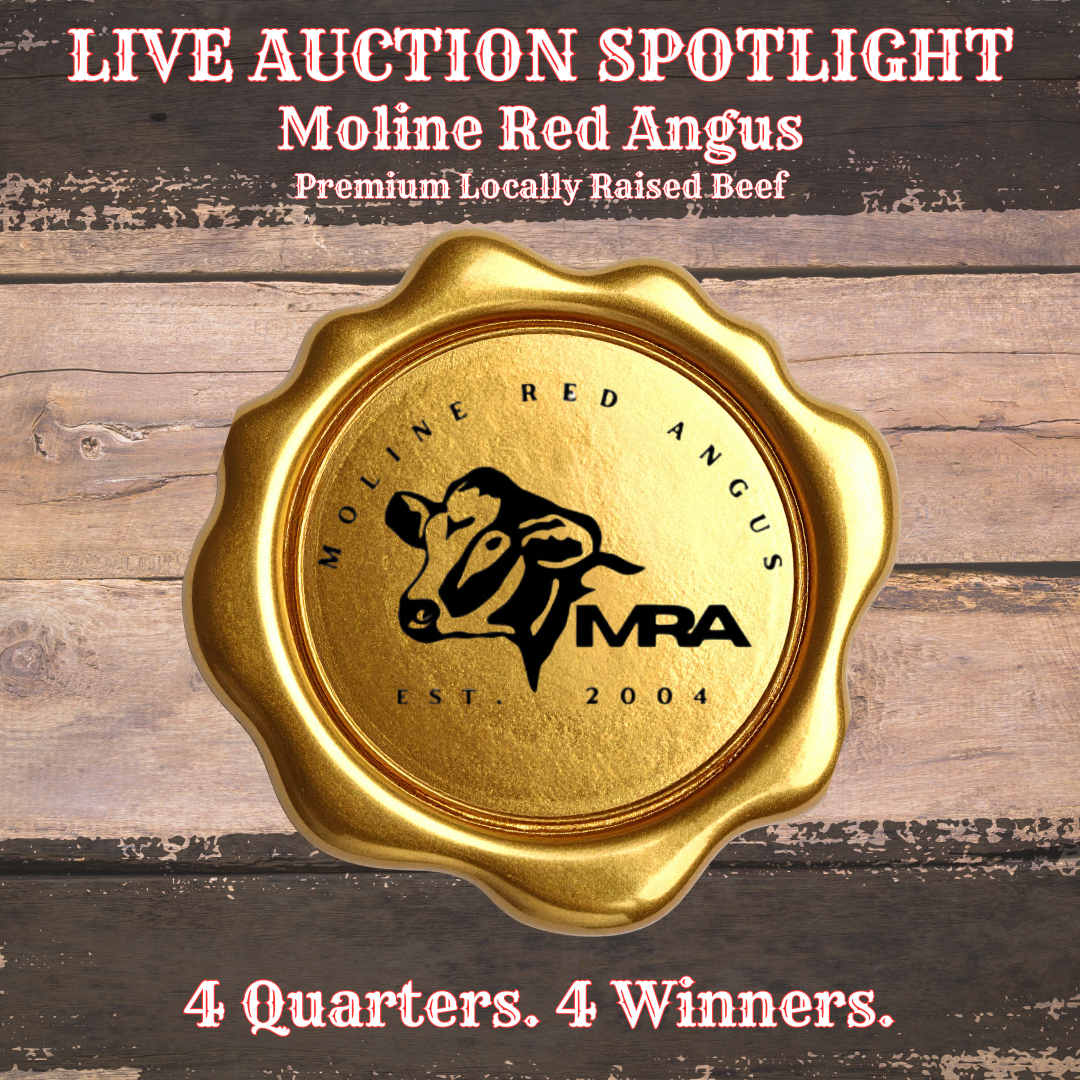 Stock your freezer with locally raised, high-quality beef donated by Moline Red Angus. This offering includes four beef quarters auctioned separately.